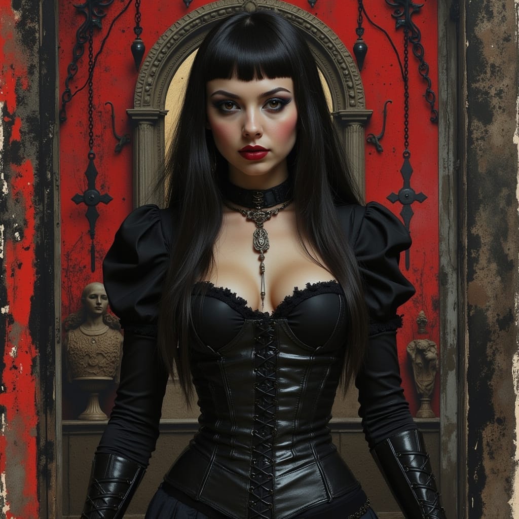 In the shadowy intersection of cutting-edge technology and dark aesthetic, Devil Doll Kate emerges as a haunting vision of gothic fantasy. Born from a real-life model’s photo and infused with AI-generated effects, this digital creation redefines the allure of eerie elegance. With her crimson lips, porcelain skin, and eyes brimming with sinister charm, Devil Doll Kate embodies the dramatic intensity favored by goth culture—a realm where beauty and darkness entwine. The AI’s surreal enhancements amplify her ethereal features, crafting a character that feels both otherworldly and intimately human.